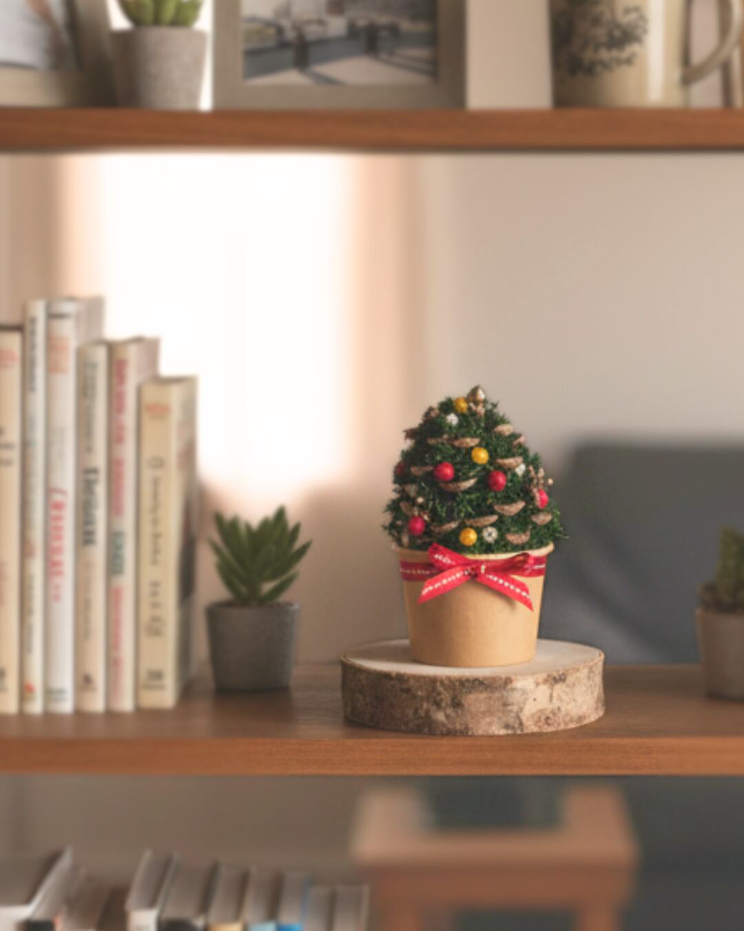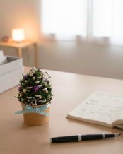 自然素材を詰め込んだ、手のひらサイズのクリスマスツリーです。